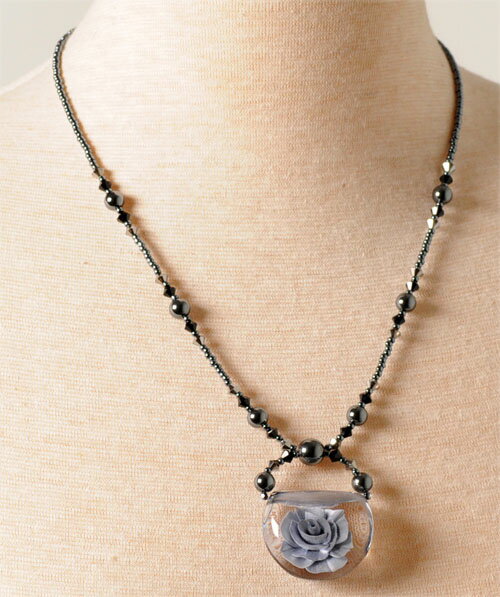 素材トップ:アクリル樹脂 チェーン:ヘマタイト スワロフスキー仕様トップの高さ:2.5 トップの幅:3.2 重さ:21.1g 厚さ:1.5 <チェーン>46+5アジャスター <留め具>引き輪アクリル樹脂の中に薔薇が入ったとってもロマンチックなアクセサリー。