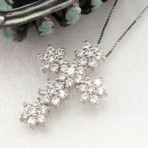 スノークリスタルのようなダイヤモンドクロスネックレス。
